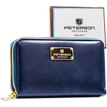 Duży, czerwony portfel damski z lakierowanej skóry naturalnej zamykany na zatrzask - Peterson