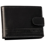 Mały, czarny portfel męski ze skóry naturalnej wyposażony w system RFID - Rovicky