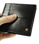 Poziomy portfel męski z czerwonym przeszyciem, skóra naturalna licowa - Rovicky