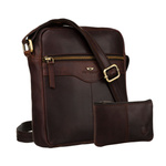Skórzana listonoszka męska w brązowym kolorze, zamykana na złoty suwak w zestawie z saszetką - Peterson