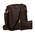 Męska, skórzana torba na ramię w brązowym kolorze w zestawie z saszetką na klucze - Peterson