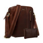 Miejska torba męska ze skóry naturalnej w brązowym kolorze, zawieszona na regulowanym pasku - Peterson