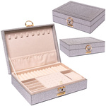Elegancka szkatułka na biżuterię w srebrnym kolorze, zamykana zatrzaskiem - Peterson