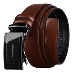 Elegancki, skórzany pasek męski w brązowym kolorze z automatyczną klamrą - Peterson
