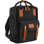 Czarno-brązowy, duży plecak damski wykonany z poliestru i skóry ekologicznej - Peterson