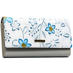 Portfel damski w kwiaty wykonany ze skóry naturalnej i ekologicznej, zamykany na zatrzask i suwak - Peterson
