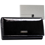 Portfel damski z lakierowanej skóry naturalnej z dużą sekcją na gotówkę - Cavaldi