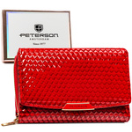 Średniej wielkości, czerwony portfel damski wykonany ze skóry naturalnej i ekologicznej - Peterson
