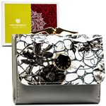 Mały portfelik damski ze skóry naturalnej w dominującym czarnym kolorze - Peterson