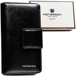 Duży, pionowy portfel damski ze skóry ekologicznej w czarnym kolorze - Peterson