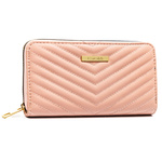 Różowy, duży portfel damski ze skóry ekologicznej w jodełkę zamykany suwakiem - 4U Cavaldi