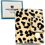 Złoty, pionowy portfel damski ze skóry ekologicznej i naturalnej w cętki - Peterson