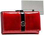 Czerwony portfel damski z portmonetką na bigiel z lakierowanej skóry naturalnej - Cavaldi