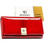 Duży, lakierowany portfel damski ze skóry naturalnej i ekologicznej w czerwonym kolorze, zamykany na zatrzask - Rovicky