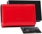 Mały, pionowy portfel ze skóry naturalnej lakierowanej z motywem liści - Pierre Cardin