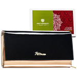 Czarno-złoty portfel damski ze skóry naturalnej z lakierowaną klapką - Peterson