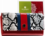 Portfel damski w kolorze czerwonym z wzorem na klapie imitującym skórę węża zamykany na zatrzask - Peterson