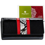 Duży portfel damski w kolorze czarnym ze zdobieniem imitującym skórę węża - Peterson