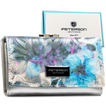 Średni portfel damski ze skóry naturalnej wyposażony w orientacji pionowej zamykany zatrzaskiem, biglem i suwakiem - Peterson
