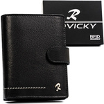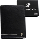 Pionowy, skórzany portfel męski w czarnym kolorze bez zapięcia zewnętrznego - Rovicky