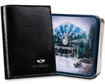Zestaw prezentowy: skórzany portfe męski i aluminiowe etui na karty — Peterson