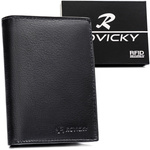 Czarny portfel męski ze skóry naturalnej mieszczący dowód rejestracyjny - Rovicky