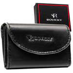 Mały, skórzany portfel męski w czarnym kolorze zamykany zatrzaskiem - Rovicky