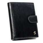 Klasyczny, zapinany portfel męski pionowy z naturalnej skóry z technologią RFID - Rovicky