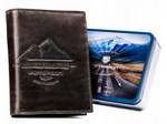 Zestaw prezentowy: skórzany, średni portfel męski i brelok do kluczy - Peterson