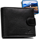 Elegancki portfel męski ze skóry naturalnej w czarnym kolorze zamykany zatrzaskiem, w zestawie z brelokiem - Peterson