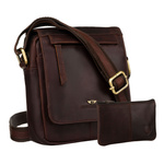 Skórzana listonoszka męska w brązowym kolorze z saszetką w zestawie - Peterson