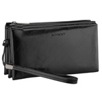 Saszetka męska do ręki wykonana z poliestru i skóry ekologicznej w czarnym kolorze - Peterson