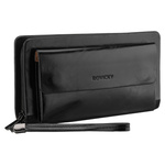 Saszetka męska do ręki wykonana ze skóry ekologicznej w czarnym kolorze - Rovicky