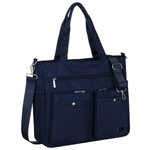 Pojemna torba damska zprzegrodą na laptopa wykonana z poliestru w granatowym kolorze - Peterson