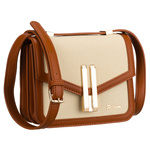 Beżowo-brązowa listonoszka damska ze skóry naturalnej i płótna poliamidowego - Peterson