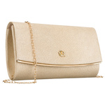 Wizytowa, złota torebka damska wykonana z tkaniny syntetycznej zamykana klipsem magnetycznym - Rovicky