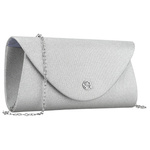 Elegancka kopertówka damska w srebrnym kolorze wykonana z tkaniny syntetycznej i zamykana klipsem magnetycznym - Rovicky