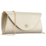 Wizytowa, złota torebka damska wykonana z tkaniny syntetycznej zamykana klipsem magnetycznym - Rovicky