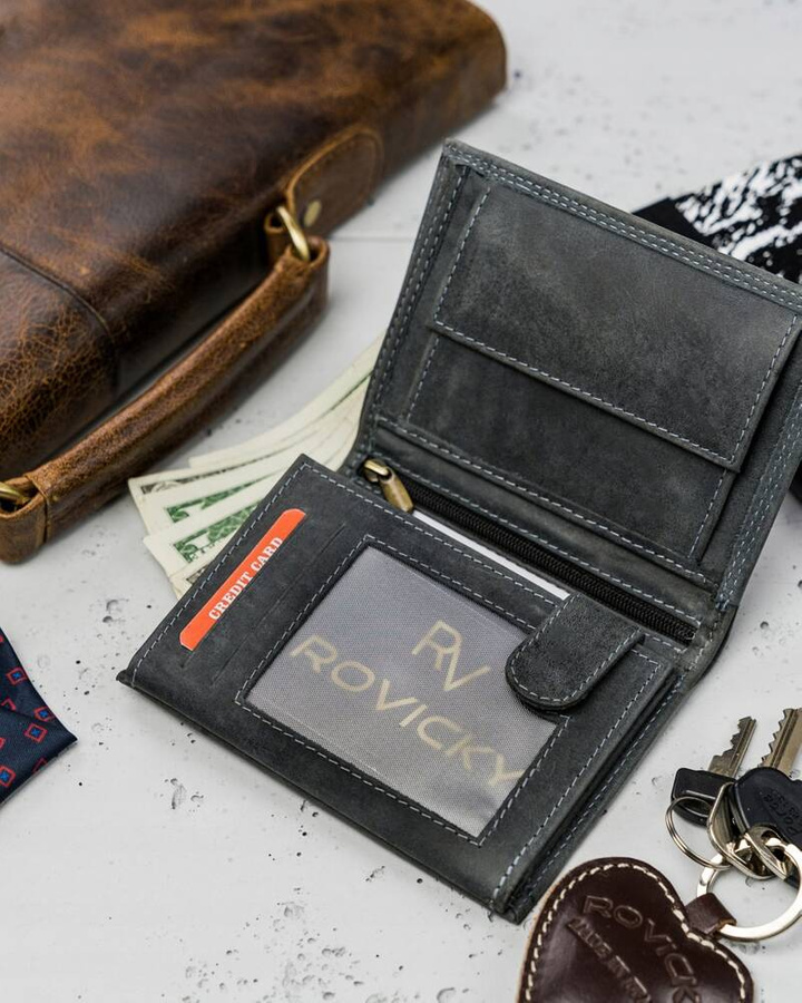 Męski portfel skórzany z zewnętrzną kieszonką do płatności — Always Wild