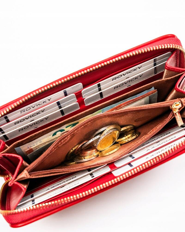 Czerwony portfel damski ze skóry ekologicznej z pikowanym panelem - Rovicky