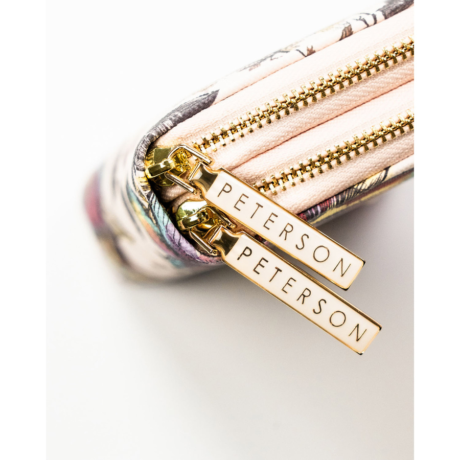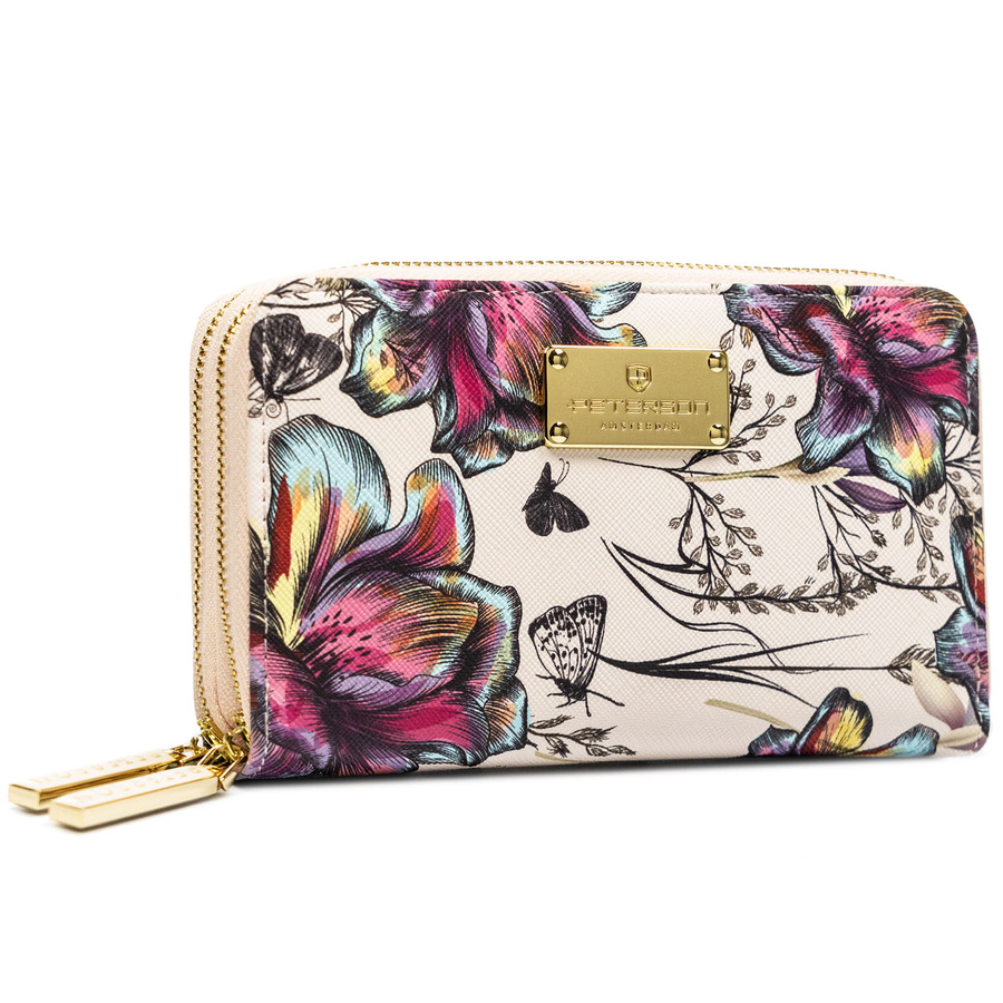 Elegancki portfel damski ze skóry ekologicznej w kwiaty, zamykany suwakiem - Peterson