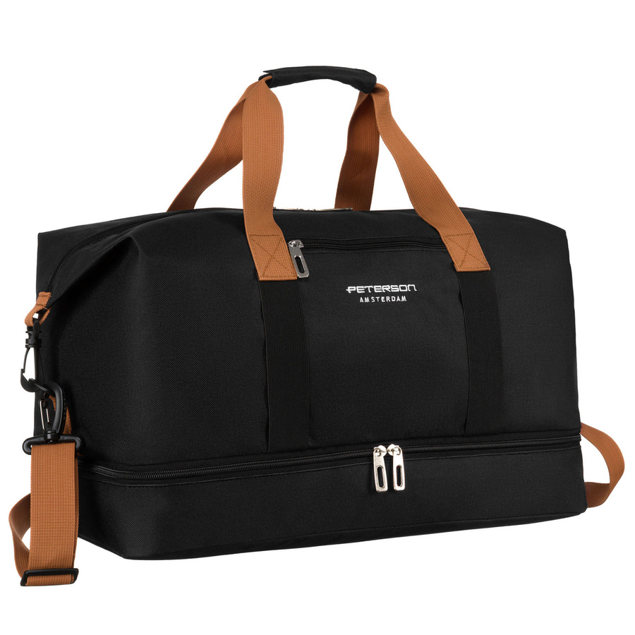Torba podróżna z poliestru w czarnym kolorze z dopinanym paskiem na ramię - Peterson