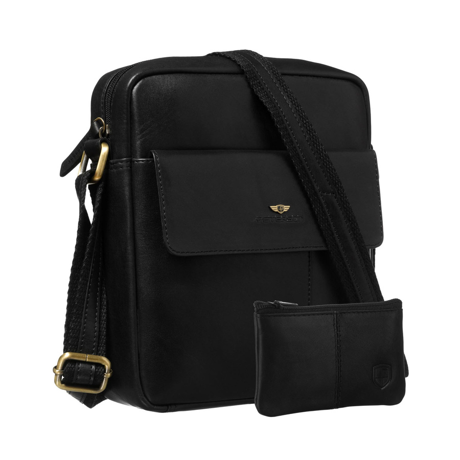 Listonoszka męska ze skóry naturalnej w czarnym kolorze, zamykana suwakiem i na magnes - Peterson