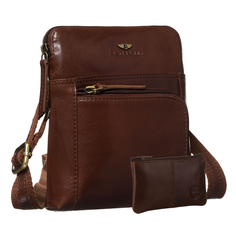 Brązowa, męska listonoszka ze skóry naturalnej zamykana suwakiem - Peterson