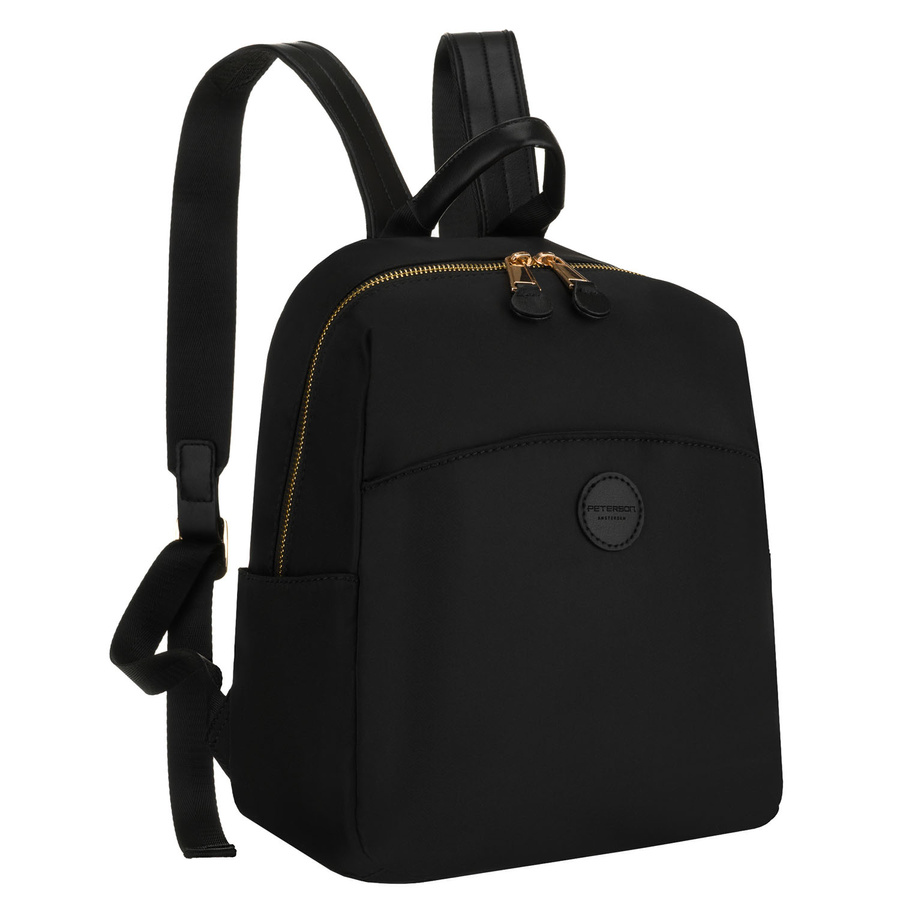 Miejski plecak damski z nylonu i skóry ekologicznej w czarnym kolorze zamykany suwakiem - Peterson