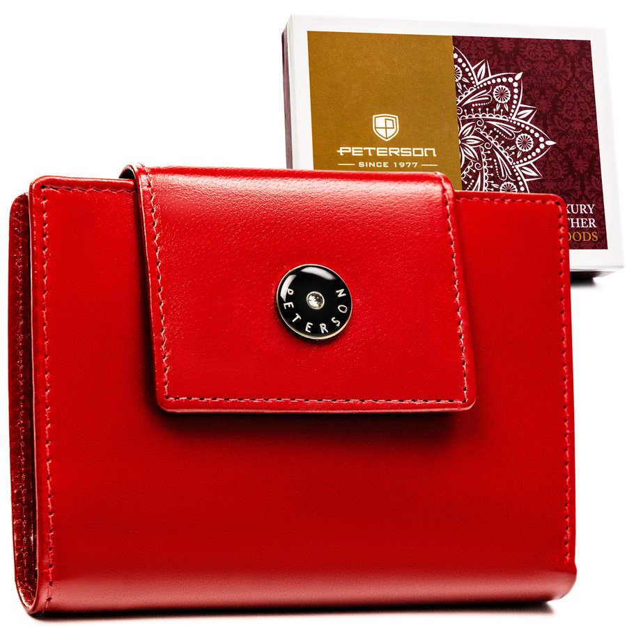 Portfel damski ze skóry naturalnej w czerwonym kolorze, zamykany zatrzaskiem - Peterson