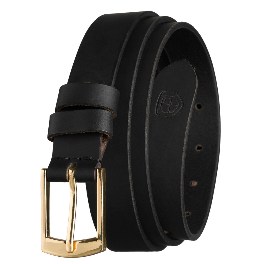 - Elegancki pasek damski ze skóry naturalnej w czarnym kolorze. Zakończony klasyczną, złotą klamrą. Pasek idealnie komponuje się ze spodniami, sukienkami, płaszczami czy kardiganami. Wyposażony w dwie szlufki.
