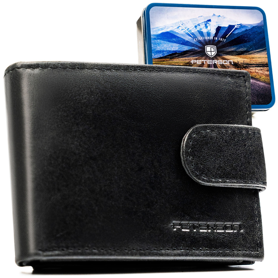 Skórzany, czarny portfel męski zamykany na zatrzask - Peterson