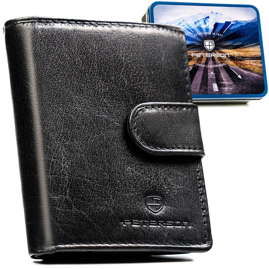Portfel męski ze skóry naturalnej w czarnym kolorze, model zamykany zatrzaskiem - Peterson