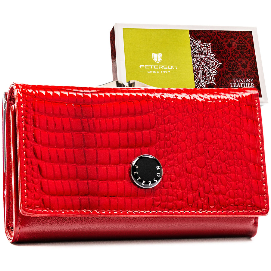 Portfel damski ze skóry naturalnej w czerwonym kolorze zamykany na zatrzask i bigiel - Peterson